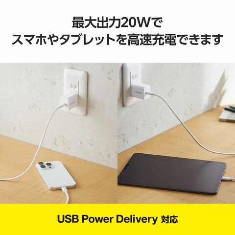 エレコム USB PD 20W AC充電器 Type-C×1 Type-C-Cケーブル付属 2.5m 折りたたみプラグ(ホワイト) PSE適合 MPA-ACCP7220WH 【返品種別A】