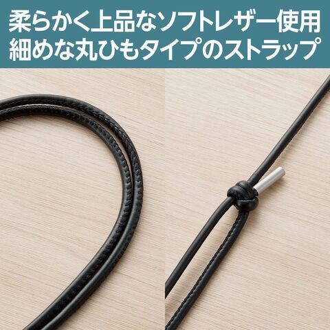 エレコム ショルダーストラップ レザー丸紐4mm 42~75cm ストラップシート付(ブラック) P-STSDH2LR04BK 【返品種別A】