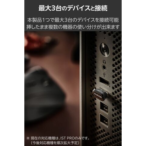 ◆エレコム トラックボール“IST PRO”をはじめとするマウス・トラックボール・キーボードなどで使用できるELECOM Bridge G1000 USBレシーバーです。本製品1つで最大3台のデバイスを接続可能。パソコンやタブレットに挿したまま複数の機器を使い分けられます。