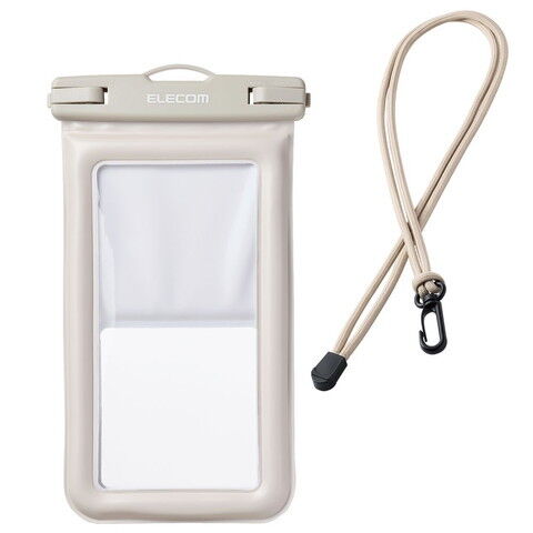エレコム 防水スマホケース 防水ポーチ IPX8 水没防止設計 顔認証対応 ( 防水ケース ×1 ショルダーストラップ ×1)(グレージュ) P-WPSF05GB 【返品種別A】