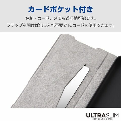 ◆端末の薄さや軽さを損ねない、薄型・超軽量なウルトラスリムタイプのソフトレザーケース(手帳型)です。