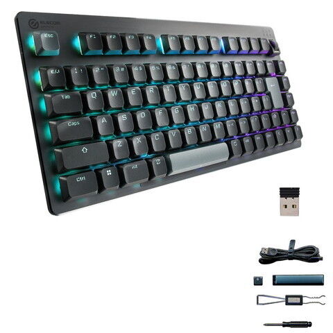 エレコム ゲーミングキーボード 有線/無線/Bluetooth リニア 赤軸 ゲーミング メカニカル キーボード 75%サイズ ロープロファイル 日本語配列 RGB ネオクラッチキーキャップ Windows 11/10 対応 V custom(ブラック) TK-VK520LLBK 【返品種別A】