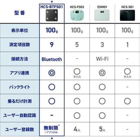 ※本体の液晶画面には体重のみ表示されます。詳細データを閲覧する際はアプリをご利用ください。