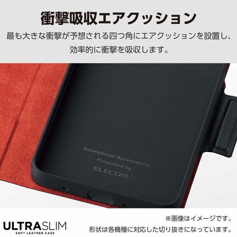 ◆端末の薄さや軽さを損ねない、薄型・超軽量なウルトラスリムタイプのソフトレザーケース(手帳型)です。