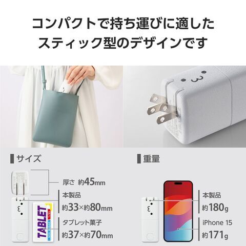 エレコム AC充電器一体モバイルバッテリー(5000mAh/30W/Type-C×1)(しろちゃん(ホワイト×ブラック)) DE-AC09-5000WF 【返品種別A】