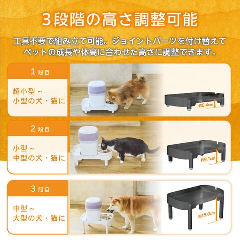 - 対応サイズ(約):幅19.5×奥行36.5cm以内の給餌器、給水器またはフードボウルなど給餌・給水の食器