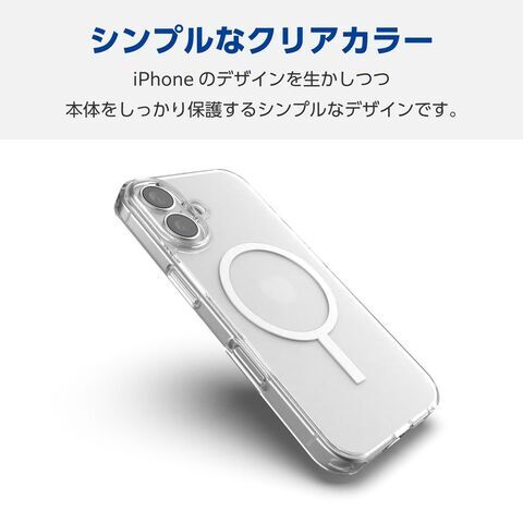 エレコム iPhone 16用 ハイブリッドケース 衝撃吸収 カメラレンズ保護設計 磁力吸着ワイヤレス充電対応 硬度5H(ホワイト) PM-A24AMAG02WH 【返品種別A】