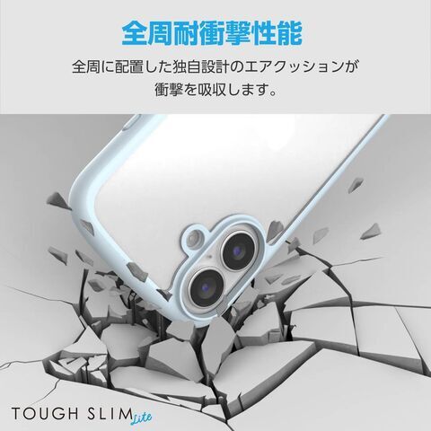 エレコム iPhone 16用 ハイブリッドケース 衝撃吸収 軽量 薄型 カメラ周り保護 ストラップホール付 硬度5H ストラップホールシート付 TOUGH SLIM LITE(ライトブルー) PM-A24ATSLFCBU 【返品種別A】