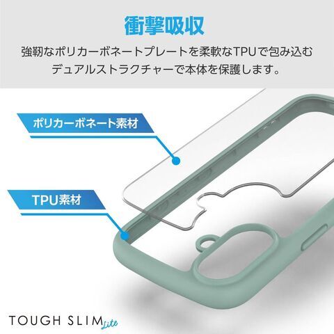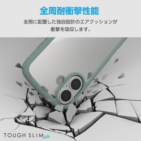 エレコム iPhone 16用 ハイブリッドケース 衝撃吸収 軽量 薄型 カメラ周り保護 ストラップホール付 硬度5H ストラップホールシート付 TOUGH SLIM LITE(グリーン) PM-A24ATSLFCGN 【返品種別A】