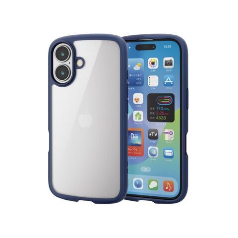 エレコム iPhone 16用 ハイブリッドケース 衝撃吸収 軽量 薄型 カメラ周り保護 ストラップホール付 硬度5H ストラップホールシート付 TOUGH SLIM LITE(ネイビー) PM-A24ATSLFCNV 【返品種別A】