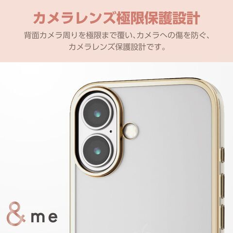 エレコム iPhone 16用 ソフトケース 衝撃吸収 カメラレンズ保護設計 ストラップホール付 メタリックライン &me(グレージュ) PM-A24AUCTMLGB 【返品種別A】