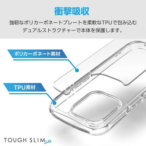 エレコム iPhone 16 Pro用 ハイブリッドケース 衝撃吸収 軽量 薄型 ストラップホール付 硬度5H ストラップホールシート付 TOUGH SLIM LITE(クリア) PM-A24CTSLACR 【返品種別A】