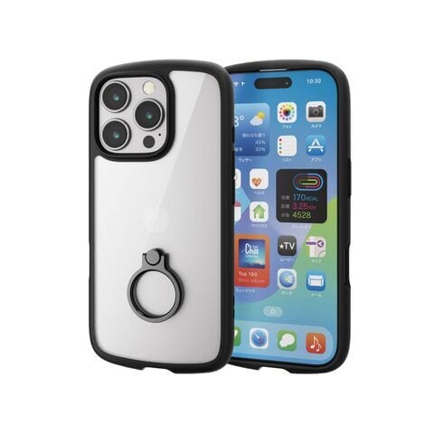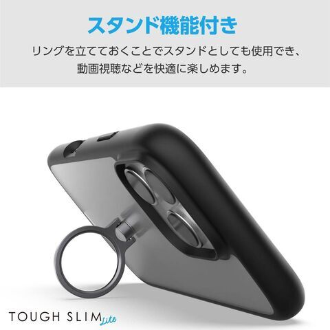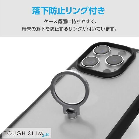 エレコム iPhone 16 Pro用 ハイブリッドケース 衝撃吸収 軽量 薄型 カメラレンズ保護設計 ストラップホール付 リング付 スタンド機能付 硬度5H ストラップホールシート付 TOUGH SLIM LITE(ブラック) PM-A24CTSLFCRBK 【返品種別A】