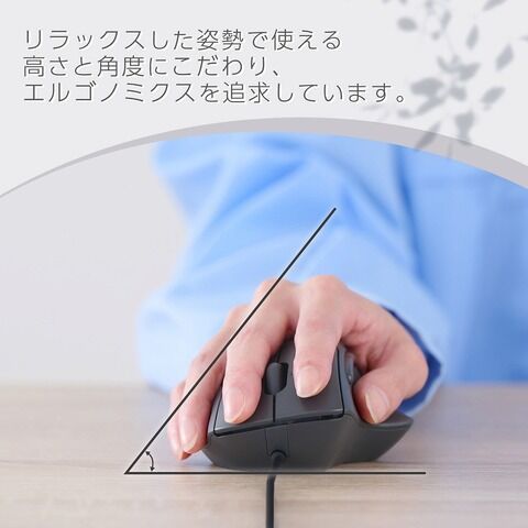 高さと角度にこだわったエルゴノミクス形状で、手のひらから手首、腕までリラックスした姿勢で使えます。