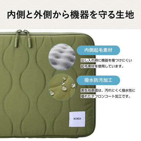 エレコム パソコンケース 14インチ オニオンステッチ キルティング PCバッグ 衝撃吸収 【 ~14インチ MacBook Surface Chromebook HP など 内寸サイズまでの ノートパソコン 収納可 】 ダブルファスナー(カーキ) BM-IBQTO14GN 【返品種別A】