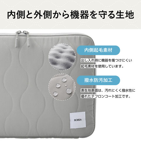 ケース内部には、出し入れ時にパソコン本体を傷つけにくい起毛素材を採用しています。