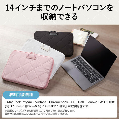 エレコム パソコンケース 14インチ クロスステッチ キルティング PCバッグ 衝撃吸収ダブルファスナー(ソフトアイスクリーム) 【 ~14インチ MacBook Surface Chromebook など 内寸サイズまでの ノートパソコン 収納可 】 BM-IBQTX14WH 【返品種別A】