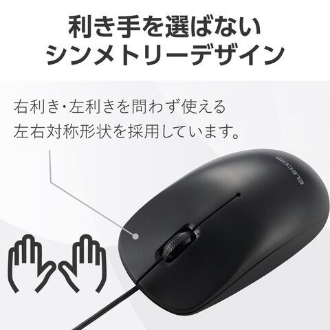 エレコム 有線 USB マウス 3ボタン Type-C 接続 【 Windows Mac Chrome 対応 】 左右対称 RoHS指令準拠(ブラック) M-LE10URCBK 【返品種別A】