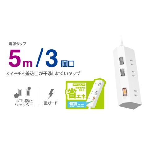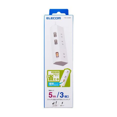 エレコム 個別スイッチ付き 雷ガード 電源タップ 3個口 5.0m(ホワイト) ELECOM T-IS01-2350WH 【返品種別A】