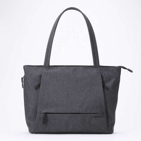 前面の左右にある縦ファスナーポケットと、メイン気室に繋がる側面のファスナーポケットは、トートバッグを肩に掛けたままでも収納したものを簡単に取り出せます。