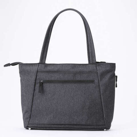 前面の左右にある縦ファスナーポケットと、メイン気室に繋がる側面のファスナーポケットは、トートバッグを肩に掛けたままでも収納したものを簡単に取り出せます。