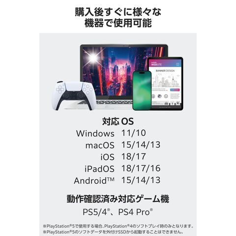 - 対応ゲーム機:PlayStation(R) 5 ※PlayStation(R) 5のソフトデータは拡張ストレージから起動できません。
