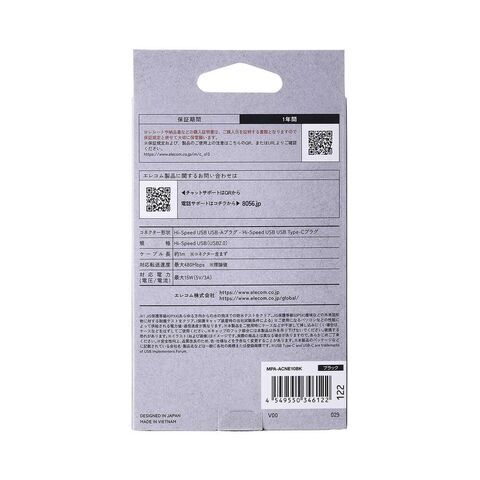 - コネクター形状:USB-Aプラグ - USB Type-C(TM)プラグ