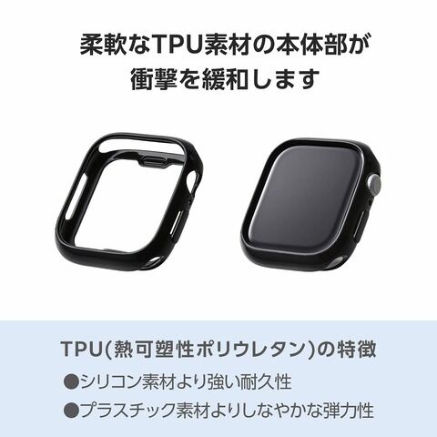フレーム部は凸形状で周辺を囲むことにより画面への不意の接触を保護し、柔軟なTPU(熱可塑性ポリウレタン)素材の本体部が衝撃を緩和します。