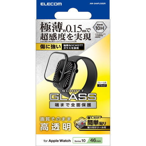 エレコム アップルウォッチ ガラス フィルム 【 Apple Watch Series 10 46mm 対応 】 全面保護 表面硬度10H 高透明 極薄 0.15mm フレーム付 指紋防止 飛散防止 気泡防止(ブラック) AW-24AFLGS2R 【返品種別A】