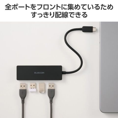 エレコム USB Type-C ハブ USB3.2 Gen1 USB-A ×4 バスパワー コンパクト 薄型【USB-C ポート搭載 MacBook mac Surface Windows iPhone iPad 等対応】ケーブル長15cm(ブラック) U3HC-H040BK 【返品種別A】