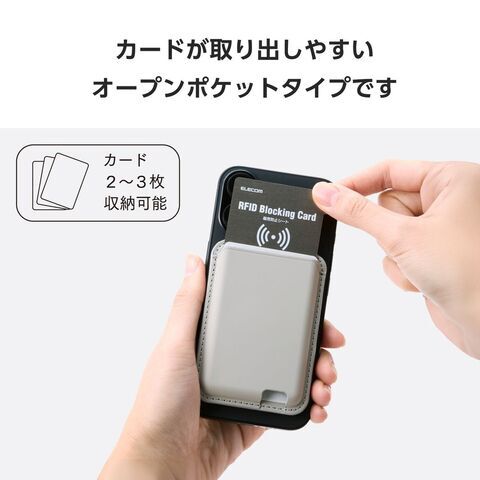エレコム カードケース スマホスタンド MagSafe iPhone 用 カード ウォレット スマホ スタンド 2~3枚収納 磁気防止シート付属 マグネット 簡単脱着 軽量 薄型(グレー) AMS-MAGWSGY 【返品種別A】