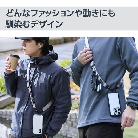 どんなファッションや動きにも馴染み、フィットする幅広フラットタイプのスマホショルダーストラップです。