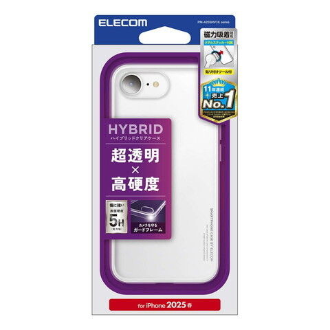 エレコム iPhone 16e用 ケース ハイブリッド カバー 衝撃吸収 カメラレンズ保護設計 メタルステッカー付 ストラップホール付 硬度5H(クリア) PM-A25SHVCKCR 【返品種別A】