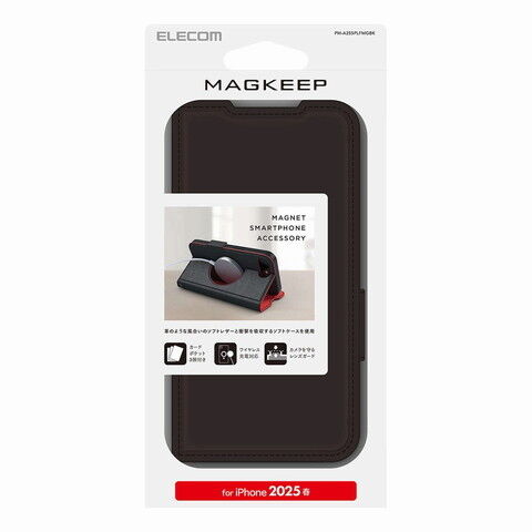 エレコム iPhone 16e用 ケース レザー カバー 手帳型 マグネット フラップ 衝撃吸収 磁力吸着ワイヤレス充電対応 スタンド機能付 カードケース機能付 MAGKEEP(ブラック) PM-A25SPLFMGBK 【返品種別A】