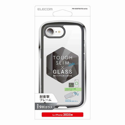 エレコム iPhone 16e用 ケース ハイブリッド カバー 衝撃吸収 軽量 薄型 メタルステッカー付 ストラップホール付 背面ガラスクリア 硬度9H ストラップホールシート付 TOUGH SLIM LITE(ブラック) PM-A25STSLFCGBK 【返品種別A】