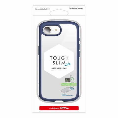 エレコム iPhone 16e用 ケース ハイブリッド カバー 衝撃吸収 軽量 薄型 背面カメラ保護 メタルステッカー付 ストラップホール付 硬度5H ストラップホールシート付 TOUGH SLIM LITE(ネイビー) PM-A25STSLFCNV 【返品種別A】