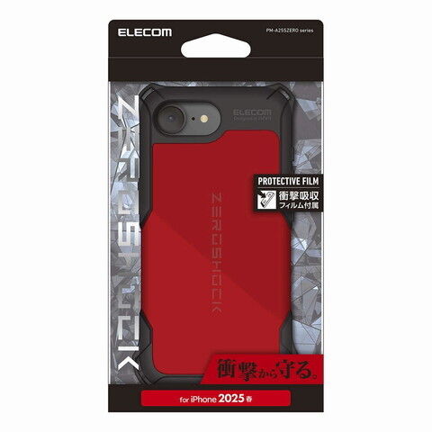 エレコム iPhone 16e用 ケース ハイブリッド カバー 衝撃吸収 カメラレンズ保護設計 ストラップホール付 フィルム付 ZEROSHOCK(レッド) PM-A25SZERORD 【返品種別A】