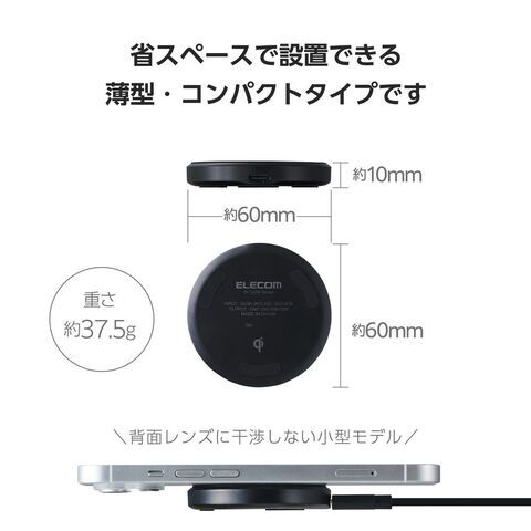 - 対応機種:Qiの5W(BPP)規格、Appleの7.5W規格、Samsungの10W規格、12W(EPP)規格のワイヤレス充電に対応した機器
