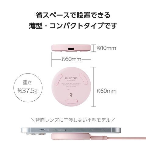 エレコム ワイヤレス充電器 Qi 認証 12W / 10W / 7.5W / 5W 卓上 充電器 ケーブル付属 1m 置くだけ充電 薄型 コンパクト 【 iPhone AirPods Android Pixel Xperia Galaxy 等対応 】(ピンク) W-QA28PN 【返品種別A】