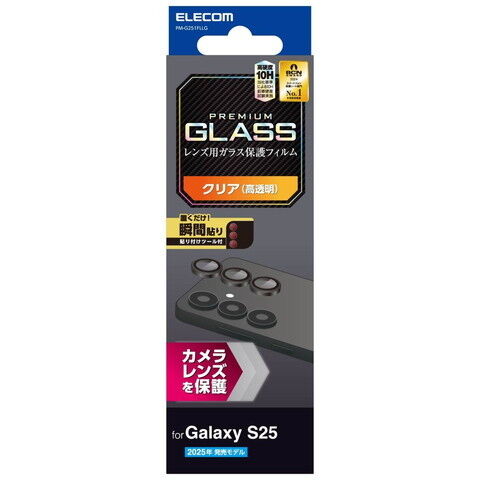 エレコム Galaxy S25用 レンズカバー カメラ保護 ガラスフィルム アルミフレーム 高透明 強化ガラス 表面硬度10H 指紋防止 貼り付けツール付(ブラック) PM-G251FLLG 【返品種別A】