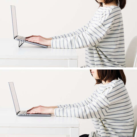 ノートパソコンの画面部分を約5cm持ち上げることで目線が上がり、作業時の姿勢を改善できます。