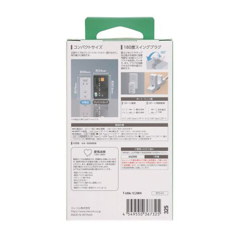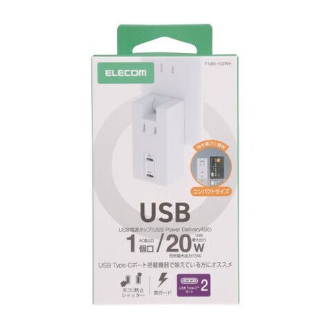 エレコム コンセント直挿しUSBタップ(1個口、USB Type-C×2ポート) ELECOM SIMPLE USB TAP T-U06-1C2WH 【返品種別A】