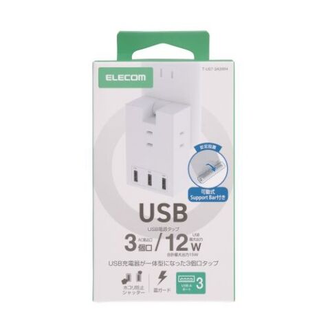 エレコム コンセント直挿しUSBタップ(3個口、USB-A×3ポート) T-U07-3A3WH 【返品種別A】