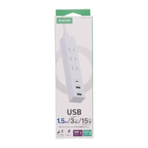 エレコム USBタップ(3個口/1.5m/USBポート A×2、Type-C×1) ホワイト ELECOM T-U08-3A2C15WH 【返品種別A】