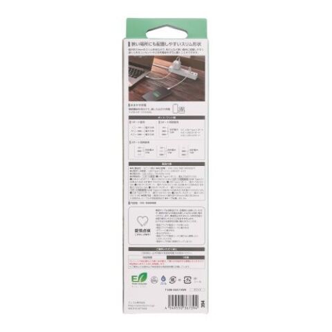 幅が約33mmのスリム形状なので、机の上など狭い場所に設置しやすく、遠くにあるコンセントやUSB充電器を手元に置くことができます。