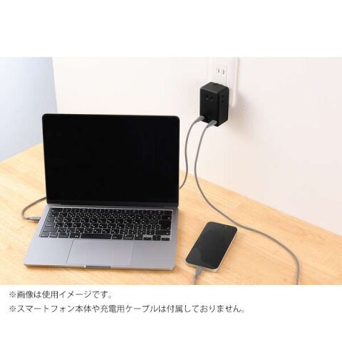 ACタップとUSBポートが一体になった、パソコンやスマートフォンなどを同時に充電できるコンセント直挿しタイプのモバイルUSBタップです。