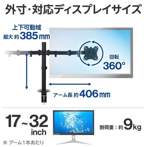17インチから32インチのモニターに対応する、モニター用アームです。
