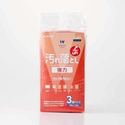エレコム 汚れ落とし 強力ウェットクリーニングティッシュ 50枚入×3個 WC-JU150H3 【返品種別A】