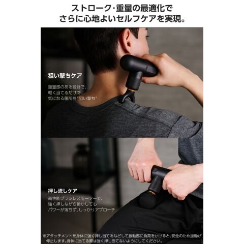 その日のコンディションや部位に合わせた刺激の強さyあアタッチメントを選んでケアできるリフレッシュガンです。