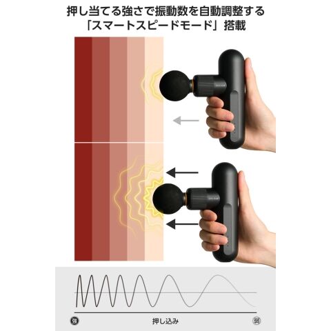 押し当てる強さによって1200~3000rpmの振動数を自動で調節する「スマートスピードモード」を搭載。